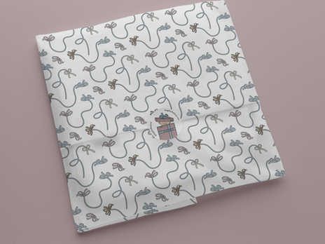 I updated their logo and colors and turned their signature gift-wrapped bow into icons and a pattern used across packaging, marketing, and the website.